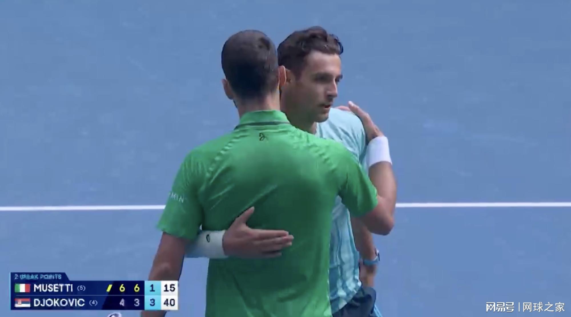 今天下午,2026年澳大利亚网球公开赛男单四分之一决赛现场,戏剧性的一幕让罗德拉沃尔球场的观众席陷入一片复杂的寂静中。意大利选手洛伦佐·穆塞蒂在盘分2-0领先、第三盘1-3落后的情况下,因意外受伤被迫退赛,将德约科维奇送入了他的第13个澳网半决赛。